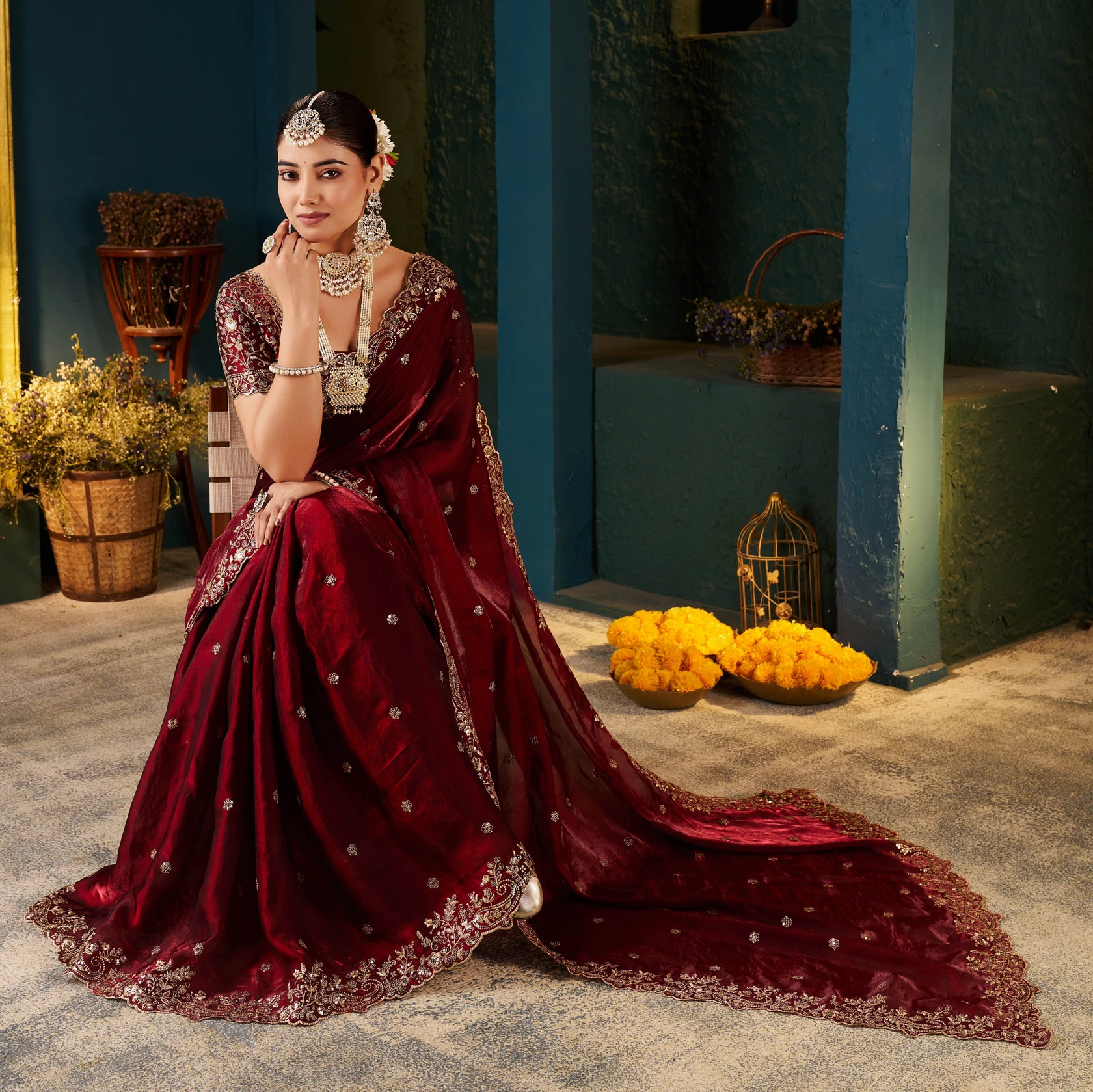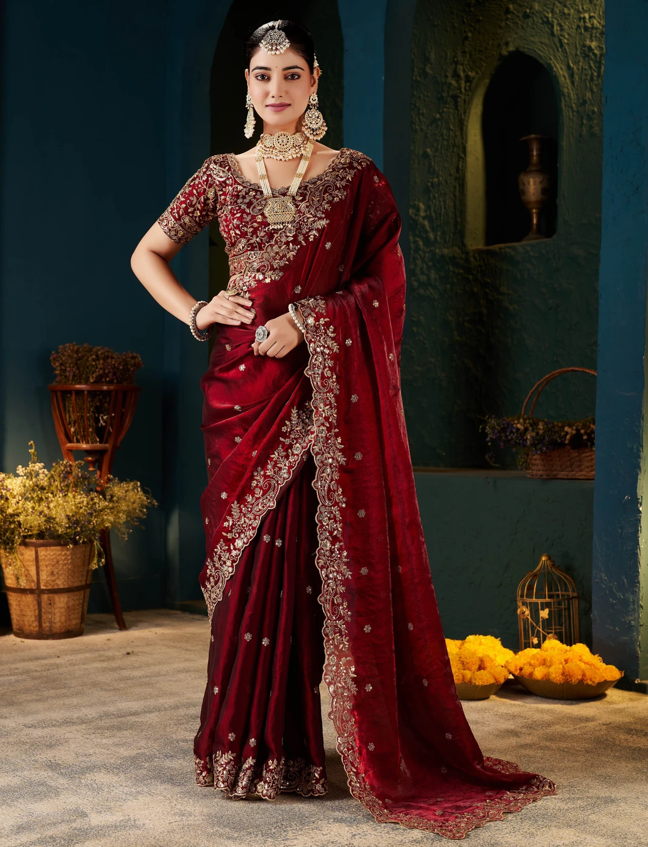 Explore The Collection Of Beautifully Designed Saree From Divyanshi creation Sarees. Saree Color: Maroon || Blouse Color : Maroon || Saree Work:, Heavy Embroidery Gold zari seqvance C Pallu ,Border : | Blouse Work:Embroidered zari seqvance unscratched blouse || Saree Fabric: Fandy Satin Silk | These Saree Are Perfect For Occasions And Events Anytime Of The Day Or Night.
